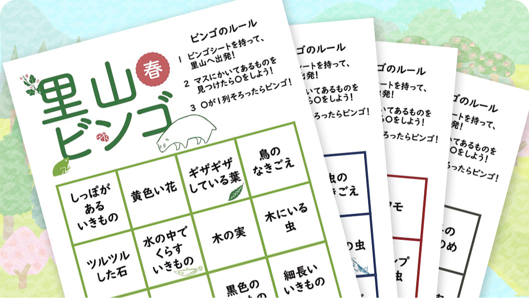 里山の自然観察しぜんかんさつや自由研究に役立つシートを用意したよ! ダウンロードして使ってみてね!