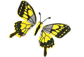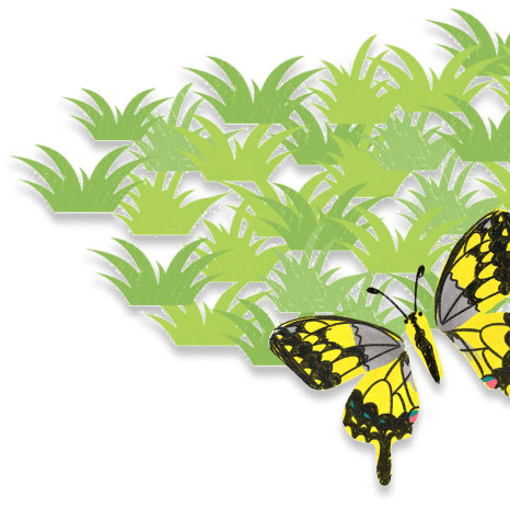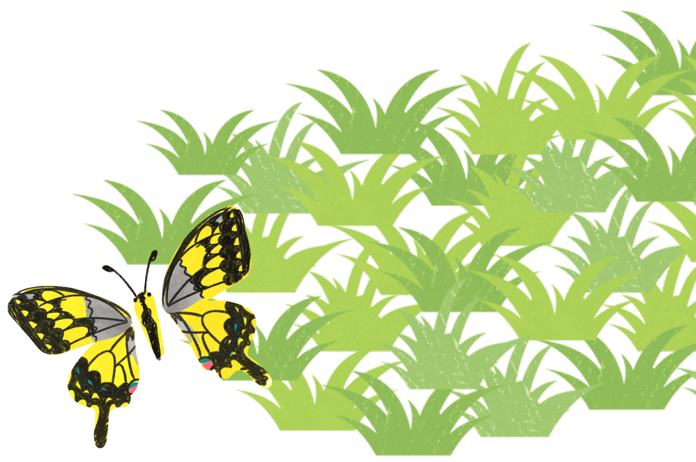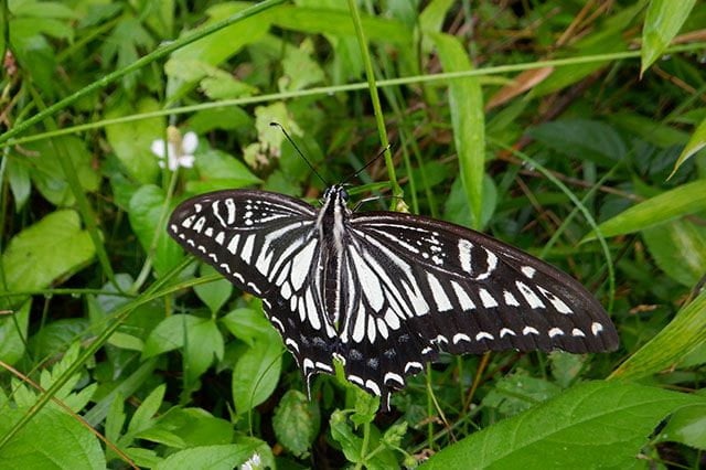はねを広げた大きさで65~90mm、全体がうすい黄色で黒のもようをもったチョウです。キアゲハとにていますが、ナミアゲハは、はねの付け根がしまもようになっています。